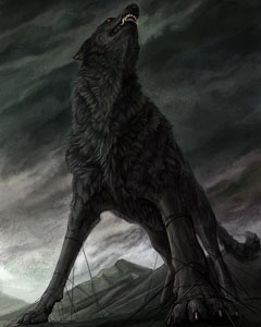 Фенрир, в скандинавской мифологии гигантский волк. Он являлся одним из трех чудовищ, которых породила на свет в лесу Ярнвид великанша Ангрбода от Локи.