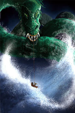 Ёрмунганд при рождении был заброшен Одином в океан, где вырос и достиг таких размеров, что смог своими гигантскими кольцами опоясать Мидгард, землю людей.