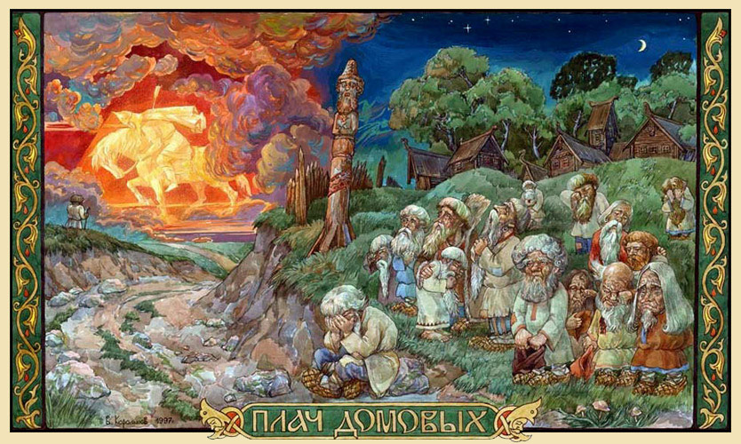 К тому времени вокруг полдеревни собралось, и взрослые, выслушав его, молча переглянулись. Они сразу поняли, что видел Чуйко домовых, слышал их причитания. Известно - если домовой плачет ночью, это всегда предвещает беду, а может быть, и смерть хозяина. Что же вещует плач всех деревенских домовушек? И что заставило их, домоседов-доможилов, покинуть свои избы и выйти к околице, рыдать там, словно на пепелище? Уж не грозит ли беда всей деревне?