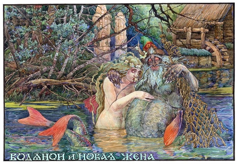 Водяной или водяник, водовик, в славянской мифологии злой дух, воплощение опасной и грозной водной стихии. Чаще всего он выступал в облике мужчины с чертами животного - лапы вместо рук, рога на голове, или безобразного старика, опутанного тиной с длинной бородой. Славяне верили, что водяные - это потомки тех представителей нечистой силы, которых бог низвергнул с небес в реки, озера и пруды.