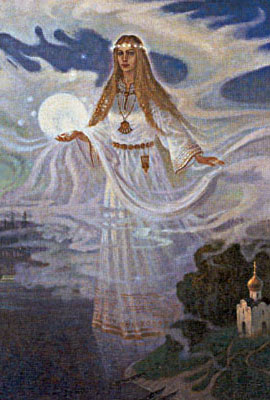 Древние славяне полагали, что Берегиня - это великая богиня, породившая все сущее. Ее повсюду сопровождают светозарные всадники, олицетворяющие солнце. К ней особенно часто обращались в период созревания хлебов - это указывает на принадлежность богини к верховным покровителям человеческого рода.