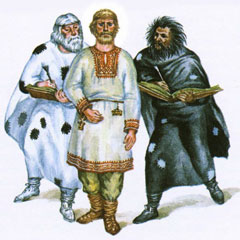 Братья Белобог и Чернобог всюду следуют за человеком и записывают в книги судеб все его дела, добрые и злые. Позже их заменили ангел-хранитель, стоящий за правым плечом, и черт — за левым.