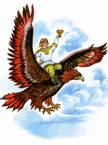 Первое из них заключалось в том, что нужно было на коне подскочить к самому окну высокой башни Рады. У девушки, сидящей у окна, нужно было снять с пальца кольцо и поцеловать ее в губы. У Крышня был удивительный белый конь, на котором он спустился с небес, и потому ему ничего ни стоило справиться с этим заданием. Он вручил Ра кольцо и тем самым доказал, что долетел до окна Рады.