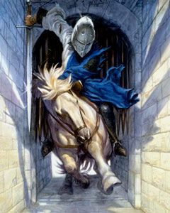 Из английских легенд о сэре Борсе. Рыцарь Борс, покинув Камелот, вскоре встретил святого человека и исповедался ему в грехах. Потом отшельник пригласил его разделить с ним трапезу, и ели они лишь хлеб и пили только чистую воду. И сказал святой отец, что не полагается сэру Борсу есть другой еды, пока не будет сидеть он за столом, где окажется Святой Грааль.