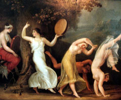 Менады, украшенные виноградными листьями и плющом, всегда следовали за Дионисом. Они убивали диких животных и пили их кровь. Тирсами они сокрушали все на своем пути, выбивали из скал молоко и мед.