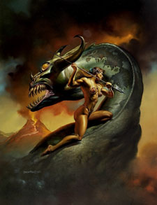 Своих противников Василиск убивал взглядом, ядом и огненным дыханием, от которого сгорала трава и раскалывались огромные горы. Древние римляне верили, что Василиск вылупился из яйца, которое снес петух, а высиживала жаба.