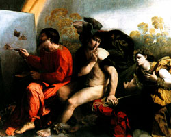 Меркурий, в римской мифологии бог торговли, прибыли и обогащения, покровитель путешественников, сын Майи. В самых ранних обрядах Меркурий (латинское слово "меркаре" означало "торговать") почитался как покровитель негоциантов и странствующих торговцев.