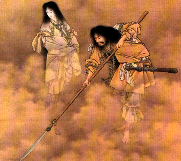 Идзанаки и Идзанами (вероятно, "первый мужчина" и "первая женщина"), в японской мифологии боги, последние из пяти поколений богов, являющихся на свет парами (до них было семь богов-одиночек, не имевших пола). Они — первые божества, имеющие облик и способные родить других богов. Высшие небесные боги, явившиеся первыми при разделении неба и земли, поручили им сформировать землю, которая находилась в жидком состоянии и, подобно медузе, носилась по морским волнам. Идзанаки и Идзанами погрузили пожалованное им богами копье в морскую воду и месили ее, вращая древко. Капли соли, падая с поднятого копья, загустели и образовали остров; получивший название Оногородзима ("самозагустевший").