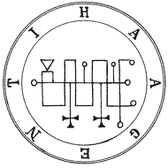Сорок восьмой Дух зовется Хаагенти (Haagenti). Он - Губернатор, сперва он появляется в облике могучего быка с крыльями грифона, но затем, по команде заклинателя, принимает человеческий облик. Его служба заключается в том, чтобы делать людей мудрыми и инструктировать их в различных вещах; также [он] превращает все металлы в золото; превращает вино в воду и воду в вино. Он управляет 33 Легионами Духов и вот его Печать и т.д.
