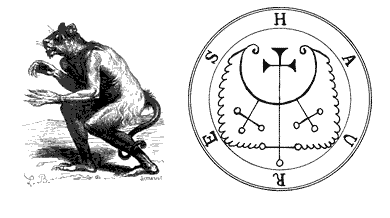 Но если он не будет находиться в треугольнике, он будет лгать обо всех этих вещах и обманывать заклинателя в этом или в других различных делах. И, наконец, он будет рассказывать о сотворении мира и богословии, и о том, как он сам и другие духи - пали. По желанию заклинателя, он уничтожит и испепелит его врагов, также он не позволит, чтобы он [заклинатель] был соблазнен каким-либо другим духом или кем-то еще. Он управляет 36 Легионами Духов, и вот его Печать, которая носится как Ламен.