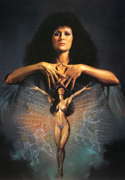Фобия или, более условно, фобии - навязчивые страхи - могут быть не только олицетворением страха перед определенным объектом или действием, но и символом объектов подсознательной боязни. Собственно, фобии это разновидность навязчивых состояний (например, агорафобия — страх открытого пространства, и др.). К навязчивым состояниям или обсессиям относятся непроизвольные мысли, воспоминания, сомнения, фобии и другие проявления человеческой психики, сопровождающиеся сознанием их болезненности и тягостным чувством непреодолимости. К примеру, на акварели Энн Андерсон изображена малышка мисс Маффет - персонаж английской детской поэзии, - которая, сидя на пригорке, испугалась паука. Арахнофобия (фобия или боязнь пауков) - явление нередкое как в реальной жизни, так и во снах.