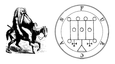 Пятидесятый Дух зовется Фуркас (Furcas). Он - Рыцарь и появляется в образе злобного старика, с длинной бородой и седой головой, верхом на палевой лошади с острым оружием в руках. Его служба заключается в том, чтобы обучать искусству философии, астрологии, риторики, логики, хиромантии и пиромантии [гадание по огню - прим. перев.]. Он управляет 20 Легионами Духов.