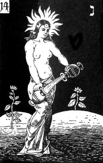 Кроме того, Умеренность (или иногда Воздержание) - четырнадцатая карта старших арканов Таро, олицетворяемая андрогинной фигурой, переливающей воду из одного сосуда в другой.