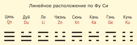 Всего триграмм восемь; отсюда название их совокупности в китайской традиции — ба гуа — восемь триграмм. Система ба гуа рассматривается в трактате «И цзин» («Книга перемен»). Все известные источники приписывают изобретение гадательных триграмм легендарному правителю древнего Китая Фу Си, который пребывал у власти, как принято считать, с 2852 года до 2737 года до нашей эры. Символы эти Фу Си изобразил в такой последовательности: