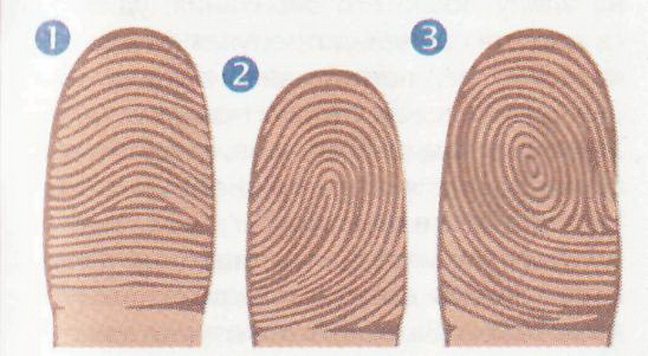 Арка, петля и завиток - основные узоры, в разных вариациях присутствующие на наших пальцах. Теперь подсчитайте, сколько у вас на руках узоров той ли иной разновидности. Доминантный узор и определяет характер. Эта классификация появилась века назад перед вами ее современная интерпретация.