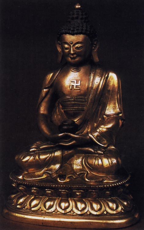 Будда Амитабха с изображением свастики