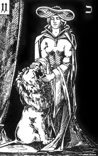 Одиннадцатая карта Таро Сила изображается укрощающей руками льва. Карта демонстрирует духовную силу, одолевающую звериную физическую силу (как в мифе о Геракле, победившем киферонского и немейского львов, или в библейской истории борьбы Самсона с молодым львом), укрощение диких инстинктов и господство высшего знания над природным миром. Укрощение «эго» и объединение противоположностей.