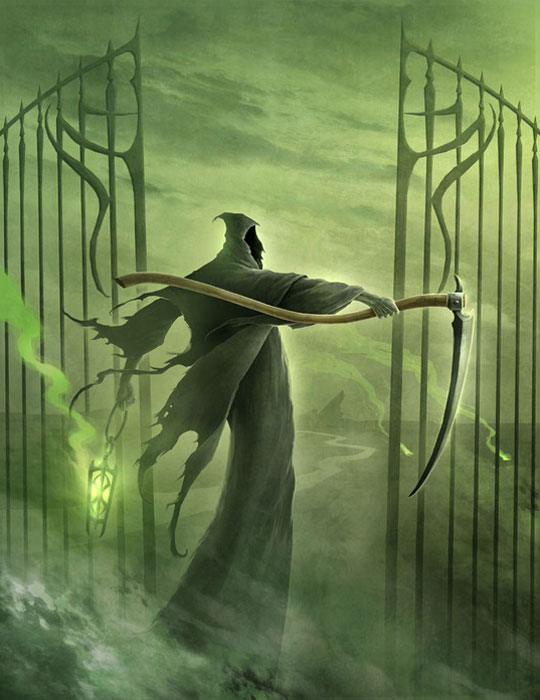 В различных мифологиях смерть описывается как результат грехопадения первопредков, как наказание человечеству. Широко известная аллегория смерти изображает ее в виде старухи или скелета с косой, однако именно последняя задает возможность выхода из одностороннего понимания смерти как конца жизни: скошенная трава вновь разрастается еще пышнее, срезанный колос уродится множеством новых.