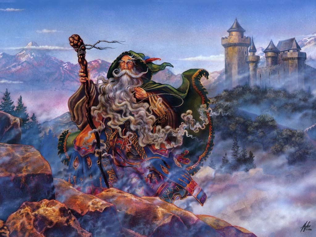 Посох - символ магической силы и страннической жизни. Оба эти аспекта нашли отражение в фигуре средневекового отшельника, олицетворения чистоты и духовного наставничества. Страннический посох имел форму буквы тау, являвшейся знаком креста (который должен был защищать паломников наподобие спасительного знака, упоминаемого в книге Иезекииля и в апокалипсисе). В раннем средневековье он стал символом духовного подвижничества.