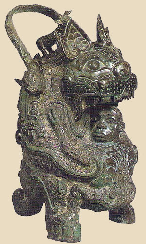 В Китае бронза стала известна со 2-го тысячелетия до нашей эры. Достаточно быстро техника обработки бронзы достигла здесь более высокого развития, чем в других государствах древности. Во времена династии Шан бронзовых дел мастера объединились в закрытые тайные общества. В эпоху Чжоу особенно высокого уровня достигло производство бронзового оружия и посуды. Особенно нужно выделить знаменитые бронзовые триподы — ритуальные сосуды па трех ногах, которые по-китайски назывались дин. В Средние века западные алхимики использовали емкости такой же формы под именем «философских сосудов». Именно в таком сосуде, по преданию, мог быть получен философский камень.