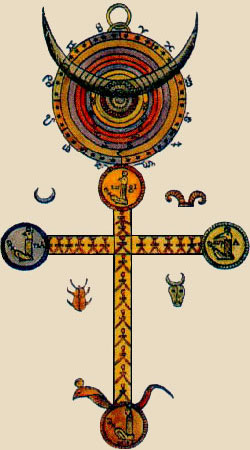 Иероглифическая Монада — символ, который предложил Атаназиус Кирхэр и развил Джон Ди в своем трактате 16-го века "О создании магического языка символов". Фигура символа базируется на египетском кресте анхе и содержит символы этих семи алхимических планет/металлов: знак овна; крест, представляющий четыре основных элемента; знак солнца; лунный полумесяц.