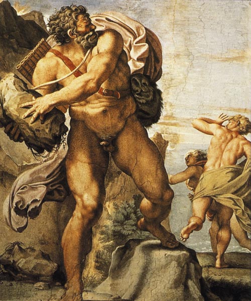 «Огромные одноглазые монстры не почитали ни Зевса, ни Геру, так как, будучи детьми Посейдона, сами принадлежали к роду бессмертных. Жалости они также не знали, и если кто из их жертв начинал надоедать им проповедью человеколюбия, таковых они съедали в первую очередь...»