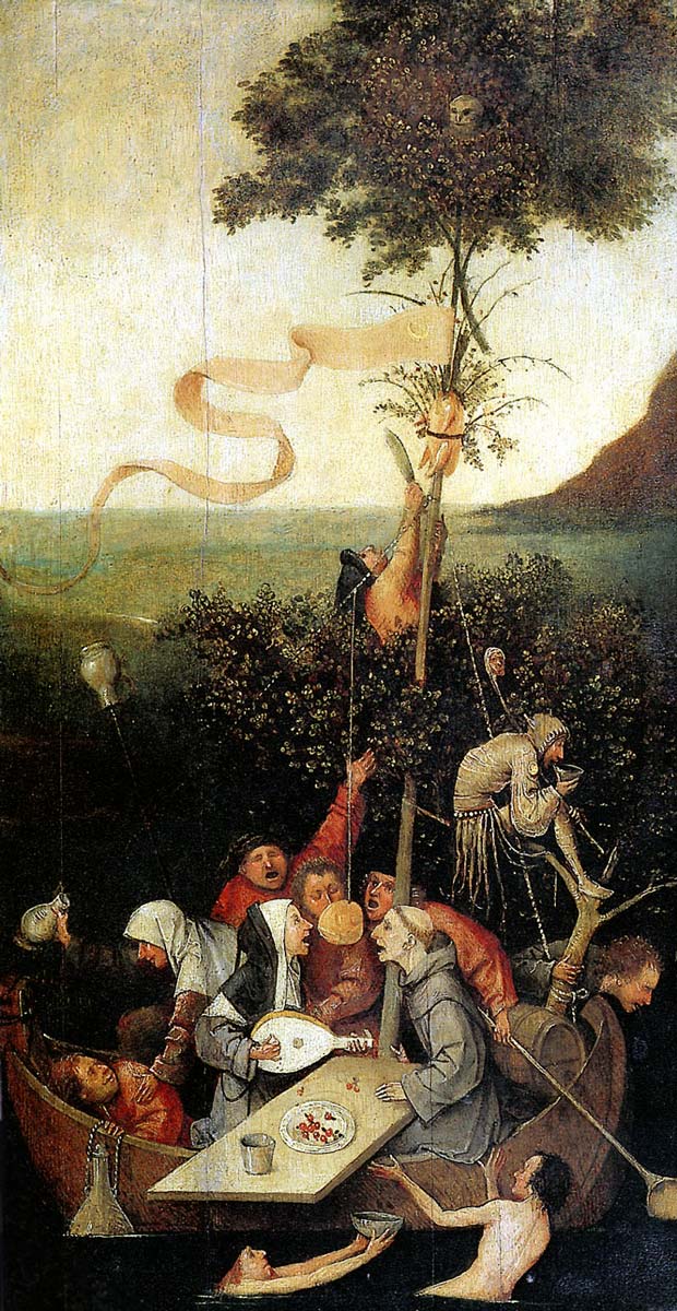 Образ бесцельного странствия, предстающего как удел маргинальных персонажей, наподобие сумасшедших. На таких кораблях отправлялись в свое странное плавание безумцы, изгнанные за пределы оседлого, упорядоченного существования. Статус сумасшедшего в средневековой культуре наилучшим образом сочетался с плаванием, символом переходного статуса, пограничного положения в целом. К тому же в европейской традиции вода устойчиво связывается с безумием, само море выступает как образ безумия, бессознательного, хаоса; с другой стороны, не менее распространенным считается представление о том, что вода очищает человека; во всяком случае она уносит безумца за пределы обитаемого пространства. На одной из средневековых гравюр мачтой корабля дураков становится райское древо познания добра и зла, что связывает его с запретным знанием, традиционно представляемым уделом безумцев, и с изгнанием из земного рая.