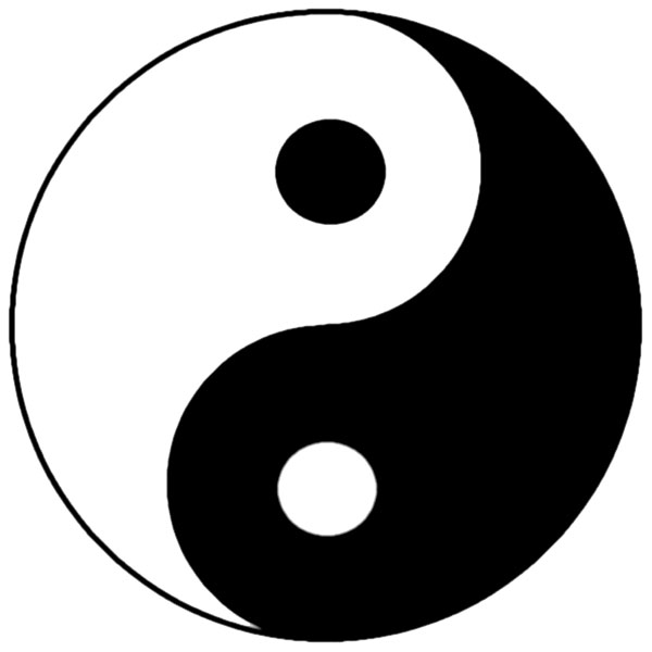 Китайский символ двойственности мира. Рене Генон рассматривает инь и ян как сечение вселенского вихря, сводящего воедино противоположности и порождающего вечное движение. Инь и ян - взаимодополняющие друг друга элементы древней китайской натурфилософии - несут в себе: инь - холодное, пассивной, влажное и женское; ян - горячее, активное, сухое и мужское.