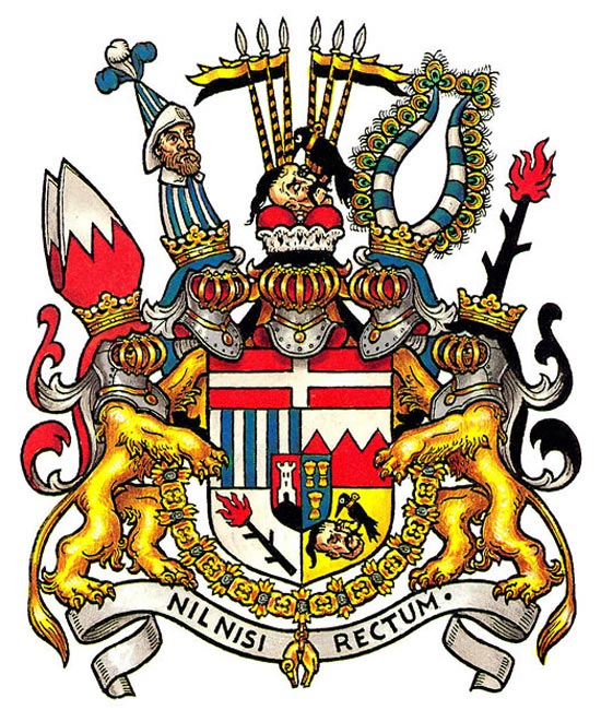 Составными частями герба являются щит, шлем, корона, нашлемник (клейнод), намет, мантия (сень), щитодержатели, девиз. (ерб составляется согласно правилам геральдики. Корона родового дворянского герба соответствует титулу владельца; на гербах монархий изображается мантия (сень в виде шатра). Главным элементом герба является щит (существует около 12 его разновидностей), поле которого нередко делится на части четырьмя основными способами. Изображения на щит наносятся металлами (золото и серебро), фи-нифтями (эмали пяти цветов), мехами (горностаевый и беличий), которые передаются условными обозначениями (ша-фировкой). Помимо своего буквального значения, связанного с каким-либо историческим или легендарным событием, составляющие герб элементы наделены символическим смыслом.