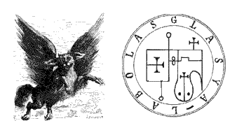 Двадцать пятый Дух зовется Гласеа-Лаболас (Glasya-labolas). Он Могущественный Губернатор и Граф, и появляется в образе собаки, с крыльями как у грифона. Он мгновенно учит всем искусствам и наукам, и [он] виновник всех кровопролитий и убийств. Он рассказывает обо всех вещах прошлого и будущего. Если пожелаешь, он может вызвать любовь у друзей и у врагов. Он может сделать человека невидимым. И он имеет под своим командованием 36 Легионов Духов. Вот его Печать
