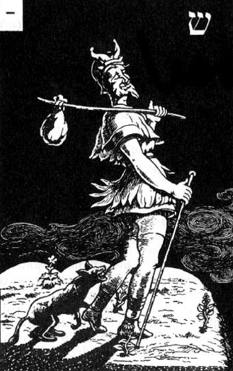 Со времен средневековья наблюдается особая роль дурака при дворе как чистого человека, не подверженного болезни социальной лжи. На карте изображен человек, который идет налегке, опираясь на посох, под ногами у него пропасть, но он идет, верный внутреннему голосу. Его лицо повернуто на север - в направлении неизведанного. Солнце светит ему в спину и освещает дорогу. Оно только что встало - это утро жизни.