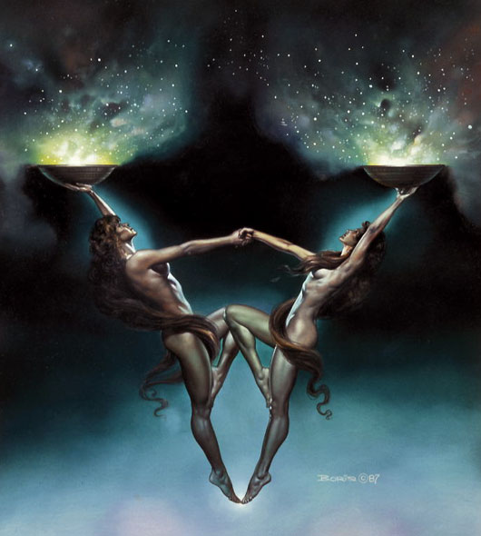Живя отражением окружающего мира, Весы являют собой зеркало, в котором отражается духовное совершенство окружающих их людей. Апогей стремления Весов — успех, признание, восхищение. В этой связи их эгоизм зачастую принимает гипертрофированные формы соперничества, особенно в области науки и искусства. Для рожденных под этим знаком эротическое начало, не являясь самостоятельным импульсом, выражается в виде чувства прекрасного, возникающего в момент наслаждения музыкой, танцами, живописью. Окружающая атмосфера служит при этом фоном для проявления сексуального импульса, однако, в отличие от Рака, который в случае инцидента теряется в лабиринтах собственного чувства, совершенно растворяясь в эротическом, становящемся для него всеобъемлющим, эротическое начало Весов служит своего рода точкой над «i» в то время, как рожденные под этим знаком остаются внутренне эмоционально холодными.