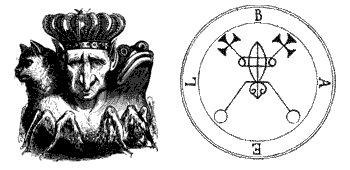 Первый Главный Дух - Король, правящий на Востоке, зовется Баел (Bael). Он управляет более чем 66 Легионами Адских Духов. Он появляется в различных видах - иногда как кот, иногда как жаба, иногда как человек, а иногда во всех этих образах сразу. Он говорит хриплым голосом. Дух будет уважать тебя, если, до того, как его вызвать, ты будешь носить его Символ в качестве Ламена.