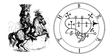 Двадцать восьмой Дух в том порядке, в котором Соломон пленил их, зовется Берит (Berith). Он - Могущественный, Великий и Ужасный Герцог. Он имеет два других имени, данных ему людьми в более позднее время: Беале (Beale) или Беал (Beal) и Бофри (Bofry) или Болфри (Bolfry). Он появляется в образе солдата в красной одежде, верхом на алой лошади, с золотой короной на голове. Он дает правдивые ответы о прошлом, настоящем и будущем. Ты должен использовать вызывающее его кольцо, таким же образом, как это говорилось про Белета (Beleth). Он может превращать все металлы в золото. Он может давать звания людям и подтверждать их. Он говорит очень четким и нежным голосом. Он управляет 26 Легионами Духов. Вот его Печать.