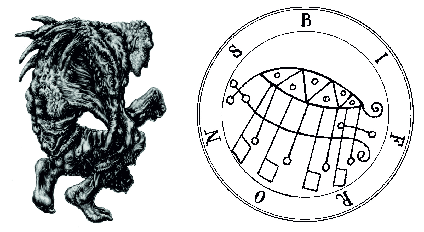 Сорок шестой Дух зовется Бифронс (Bifrons), или Бифроунс (Bifrous), или Бифровс (Bifrovs). Он - Граф и появляется в образе чудовища, но через некоторое время, по команде заклинателя, он принимает форму человека. Согласно своей службе он дает познания в астрологии, геометрии и других искусствах и науках. Он дает знания о свойствах драгоценных камней и деревьев. Он меняет [местами] тела мертвых и переносит их в другие места, а также зажигает мнимые свечи на могилах мертвых. Он управляет 6 Легионами Духов. Вот его Печать, которой он будет подчиняться