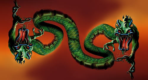 Мифическое животное, ее название в переводе означает «движущаяся в двух направлениях» — считалось, что она одинаково легко перемещается как вперед, так и назад. Описывается как «змея о двух головах — одна на обычном месте, другая на хвосте; обеими она может ужалить, двигается проворно, и глаза у нее горят, как свечи» (Брунетто Латини, «Энциклопедия»).