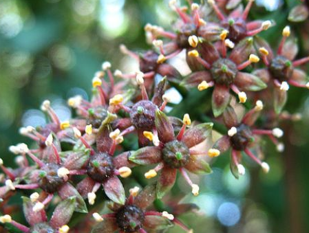 Ботаническое описание. Яборанди Pilocarpus jaborandi L. — дерево или кустарник с непарноперистосложными листьями. Размеры листьев и листочков сильно варьируют у разных видов, но форма отдельных листочков всегда овальная, на верхушке имеется небольшая выемка, что служит характерным признаком всех видов, край цельный, вторичные жилки сливаются по краю дугами, на свету видны многочисленные просвечивающие точки - вместилища эфирного масла. Цветки красные, собраны в длинные (до 50 см) кисти. Плод - капсула с почковидными черными гладкими семенами. Растет в тропических лесах Южной и Центральной Америки. Разводится в парках. Другие виды: хаборанди (Pilocarpus pentifolius L.).