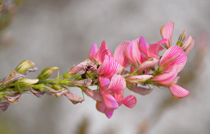 Ботаническое описание. Эспарцет песчаный Onobrychis arenaria - многолетнее травянистое растение высотой 30-60 см, со стержневым корнем. Стебли многочисленные, прямостоячие. Листья сложные, непарноперистые, с 13-25 листочками и перепончатыми, треугольно-ланцетными, заостренными прилистниками. Доли листьев продолговато-ланцетные, снизу шелковистые. Цветки мотыльковые, ярко-розовые, собраны в густые колосовидные кисти. Плод - боб, округлый, орешковидный, односемянный, зубчато-шиповатый, с сетью жилок. Цветет в мае - июле.