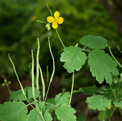 Ботаническое описание. Это - многолетнее растение с мощным (иногда толщиной с палец) корнем. В зависимости от местообитания его высота колеблется от 30 см до 1 м. Все части растения (даже корни) выделяют желтый млечный сок, очень едкий на вкус и действующий раздражающе. Стебель разветвленный, слабо опушенный, покрыт также опушенными очередными сизовато-зелеными, внизу - перистыми, вверху - перистолопастными листьями. Блестящие золотисто-желтые цветки с четырьмя лепестками и многочисленными тычинками собраны в зонтиковидное соцветие. Удлиненные стручковидные плоды несут семена, имеющие белые придатки, которые очень любят муравьи, из-за чего семена чистотела часто заносятся на необычные места. Чистотел цветет почти круглый год, с (марта) апреля до октября (ноября), но в основном в мае-июне. Обычен около жилья, на обочинах дорог, у изгородей, в кустарниках.