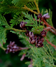 Применение в медицине. В дерматологии, гомеопатии и народной медицине препараты туи употребляются внутрь при псориазе, аллергических заболеваниях кожи, красном плоском лишае, коллагенозах (красной волчанке, склеродермии), вирусных заболеваниях кожи, мастоцитозе, вульгарных и розовых угрях; наружно - при всех вышеперечисленных заболеваниях и чесотке. Один из компонентов эфирного масла туи - хинокитиол активен в разведении 1:64000 и 1:128000 против Trichophyton, Eridermophyton и Achorion; рост непатогенных грибков подавляется им в разведениях 1:800, 1:16000. В гомеопатии препараты из свежей туи применяют при хроническом воспалении волосяных мешков и др. С лечебной целью используют молодые ветви с чешуевидными листьями.