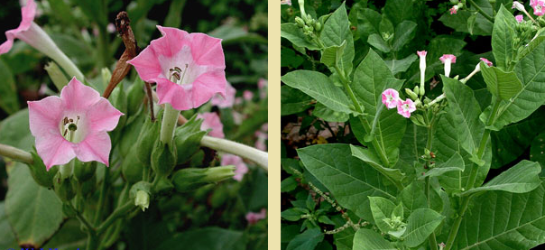 Ботаническое описание. Растение ядовито! Стебель этого растения достигает 2-м высоты, железисто-опушенный, слаборазветвленный, с большими листьями и собранными в метелку воронковидными, карминно-красными цветками. Родина табака - Виргиния, но культивируют его во многих странах, особенно на Кубе и в Бразилии, а также в Европе.