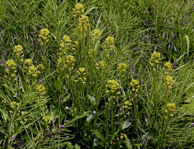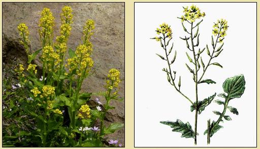 Ботаническое описание. Часто сурепка нежелательный гость в посевах трав и хлебов. Сурепка обыкновенная — (Вагbагеа vulgaris) — двулетнее травянистое растение высотой 40-60 см. Стебель голый, разветвленный наверху. Листья очередные, лировидные; прикорневые и нижние — черешковые, верхние — сидячие. Цветки обоеполые, правильные, желтые, четырехлепестковые, в верхушечных кистевидных соцветиях, цветут в мае. Плод — четырехгранный стручок. Одно растение дает до 10 тысяч семян. Сурепка обычна на лугах, пастбищах и в посевах (как сорняк) на большей части территории средней полосы России и в Сибири. Известна как лекарственное, медоносное и пищевое растение.