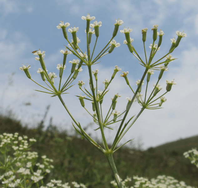 Ботаническое описание. Резак обыкновенный Falcaria vulgaris Bernh. - двулетнее травянистое растение высотой 30-45 см, шаровидной формы, с сильноветвистым цилиндрическим стеблем. Листья тройчатораздельные, с линейно-ланцетными, кожистыми, мелкопильчатыми долями. Цветки мелкие, белые, с пятилепестным венчиком и пятизубчатой чашечкой. Тычинок 5. Пестик с 2 столбиками и нижней завязью. Цветки собраны в сложные зонтики. Обертки и оберточки из 4-8 листочков. Плод - семянка, продолговато-линейная, с широкими ребрами. Цветет в мае - июле.