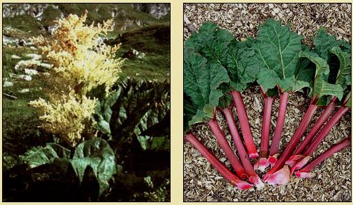 Ботаническое описание. Родина предков ревеня - высокогорья Западного Китая и Восточного Тибета. Однако для получения аптекарского сырья ревень специально культивируют во многих европейских странах. Наибольшее его количество ввозится из Китая, где его получают от 5-10-летних дикорастущих растений. Ревень лекарственный достигает примерно 2-3 м в высоту. В первый год образуется только мясистый корень, а вслед за ним корневище, которое из года в год становится все более мощным и от которого отходят длинные боковые корни и многочисленные клубни. Прикорневые листья с длинными черешками, широкосердцевидные, пальчаторассеченные; стеблевые - значительно мельче, проще и имеют короткие черешки. Мелкие цветки сгруппированы в метельчатые соцветия, которые выходят из пазух ладьевидных верхних листьев. Во время цветения цветонос удлиняется. Все сказанное практически целиком относится и к садовому ревеню.
