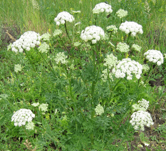 Ботаническое описание. Порезник промежуточный Libanotis intermedia — многолетнее травянистое растение высотой 60-120 см, с высоким, угловато-бороздчатым, серовато-зеленым, вверху слабоветвистым стеблем. Листья очередные, влагалищные, снизу сизовато-зеленые; нижние - дваждыперистые; верхние - перистые, со специфическим запахом. Доли листьев перисто-рассеченные, острые, широколанцетные. Цветки мелкие, беловатые, пятилепестковые, с нижней завязью, собраны в сложный зонтик с многолистными обертками. Цветет в июне - июле. Растет по лугам, берегам рек, степным склонам, кустарникам, лесным полянам во многих областях России.