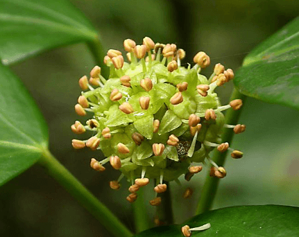 Ботаническое описание. Плющ колхидский Hedera colchica L. — вечнозеленая лиана длиной 20-30 м, с тонкими побегами, несущими короткие корни-присоски, с помощью которых она прикрепляется к вертикальным поверхностям. Листья очередные, кожистые, темно-зеленые, матовые, черешковые. Цветки обоеполые, пятичленные, зеленовато-желтые, собраны по 12-35 в зонтики. Плод ягодообразный, черный. Цветет в сентябре - октябре. Растение ядовито! Растет на Кавказе, в Иране, Малой Азии и на Балканах.