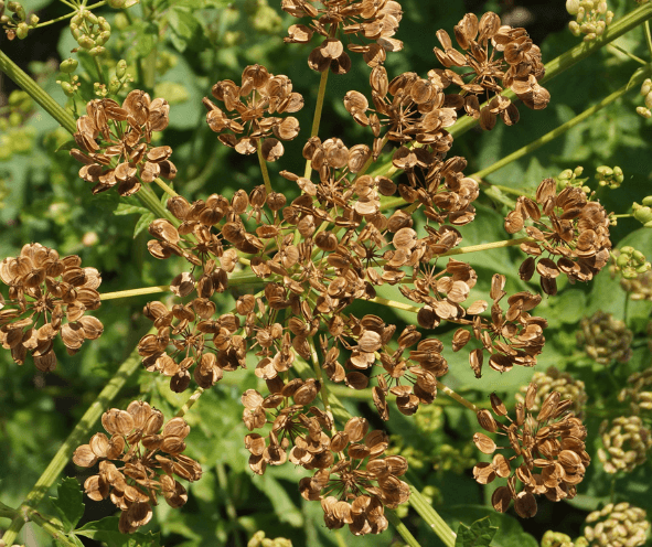 Сбор и заготовка. Незадолго до полной зрелости зонтики срезают и вывешивают пучками для сушки. После высушивания плоды обмолачивают.