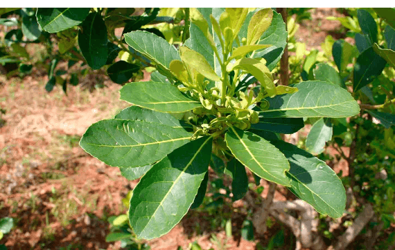 Сбор и заготовка. Заготавливают ветви и листья. В прохладное время года (май - сентябрь) обрубают ветви деревьев и на месте, в лесу, их держат над костром для разрушения ферментов, чтобы листья не почернели при дальнейшей обработке. Затем тонкие ветви обрывают, связывают в пучки и отправляют в населенные пункты, где их быстро сушат в сушилках. На плантациях мелкие ветви и листья нагревают на малом огне или пропускают через них водяной пар. Хорошо просушенное сырье растирают в порошок (крошку), который называют травой.