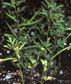 Ботаническое описание. Это однолетнее растение имеет сильный запах. Мощный стержневой корень прочно закрепляет его в почве, а на поверхность поднимается цветонос 60-см высоты. Часто, однако, побеги лежат на почве. Стебель округлый, ветвится в верхушечной части. Листья похожи на клеверные, тройчатые. Желтые и желто-белые мотыльковые цветки расположены поодиночке или по два в пазухах листьев. Плоды до 10 см в длину, саблевидные, содержат от 5 до 20 семян. Цветет в мае-июне. Встречается в дикорастущем состоянии от Средиземного моря до Центральной Азии; севернее Альп культивируется, правда редко. Выращивать его у нас можно повсюду. Созревшие семена следует высевать рядками, на расстоянии 20 см друг от друга, чтобы отдельные растения хорошо развивались.