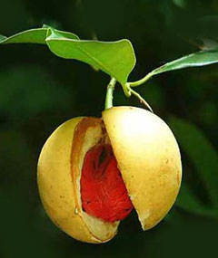 Ботаническое описание. Орех мускатный Myristica fragrans — вечнозеленое двудомное дерево высотой 9-12 м. Листья кожистые, голые. Цветки светло-желтые, ароматные, собраны в кисти. Плод - ягода, мясистая, яйцевидно-шаровидная, оранжево-желтая, длиной 5-9 см, с плотной кожурой. При созревании кожица и мякоть плода расщепляются надвое кольцевой вертикальной трещиной; внутри содержится темно-бурое семя, частично закрытое ярко-красным сочным присемянником (арилусом). Цветет и плодоносит почти круглый год. Урожай семян собирают 2 раза в год. Родина - острова Банда (Юго-Восточная Азия). Введено в культуру в тропических странах как ценное эфирномасличное и пряное растение.